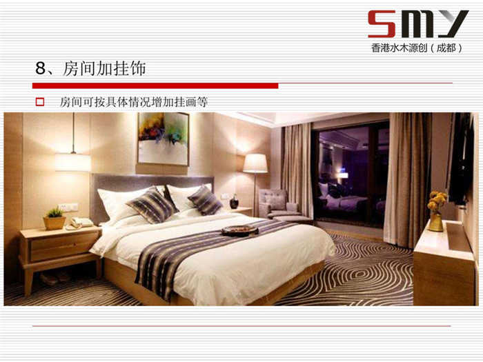 發布人:水木源創 發布時間:2019.04.03“輕裝修,重裝飾”的理念已經被人們普遍接受,酒店硬裝完成之后,整個酒店給人的感覺是空洞、冷冰冰的。后期需要軟裝設計師將家具、裝飾畫、燈飾、布藝、盆景及其它擺件填充到整個房間,讓房間增加神秘色彩。酒店客房是客人呆的時間比較長久的酒店空間,那么對于酒店房間裝飾是比較重要的,什么樣的酒店客房房間裝飾設計方案被客人所喜歡呢?達州水木源創設計小編接下來介紹精品酒店客房房間裝飾設計方案需要利用的裝飾元素有哪些?