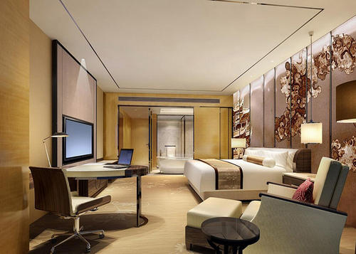 第五,裝飾要素。酒店裝飾主要指確認(rèn)墻面、地上、頂棚的原料、花樣、圖畫、紋理及做法。室內(nèi)墻面裝飾的效果是保護(hù)墻體,滿意室內(nèi)運(yùn)用功能要求,一起供給美觀、整潔的酒店環(huán)境。室內(nèi)墻面與人的距離近,因而所用的裝飾資料不能有氣味,不能傷害人體健康,質(zhì)感要柔和細(xì)膩。
