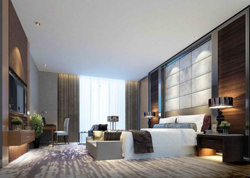 空間的尺度和比例,首先要滿足功能的尺度要求,滿足人使用的尺度要求,其次是人的精神需求。商務酒店設計的對比包括空間體量、形狀、層高、開敞與封閉等方面的對比,除了功能原因之外,通過空間的高低、層次和變化,空間層次的豐富,避免空間過于平淡。