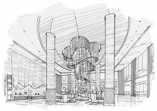 現在國內的大型商業綜合體或商務酒店的內部動線,都幾乎越來越多的規劃弧形,甚至略有彎曲的動線,誠然,與筆直的通道相比,通常彎曲的通道在以下兩個方面更具優勢:商務酒店設計中,首先,等距離間曲線的總長度比直線更長,因此對其中的每個品牌店鋪而言,曲線通道就能提供更大的臨通道展示面,其次,直線曲線通道給人創造的視覺感受較為乏味,所看到的內容主要是空曠的通道本身及遠處的端頭,而曲線通道可以借助弧度將更多店鋪引入到視覺范圍,創造視野的豐富性及趣味的行走體驗。