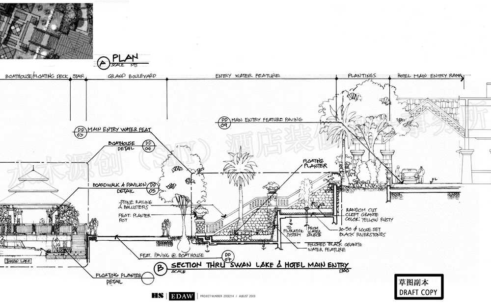 對合作項目設計方面的定位,酒店內部交通動線分析,酒店周邊商業業態布局分析,室內外風格規劃,造型設計意向分析等。